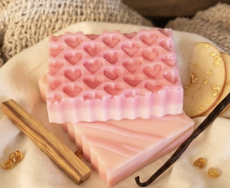 Love spellLOVE SPELLLaat je zintuigen betoveren door Love Spell, onze handgemaakte zeep die pure vrouwelijke sensualiteit uitstraalt. Elk blok is met liefde gegoten, in roze tinten en afgewerkt met een bodem van hartjes, waardoor het…